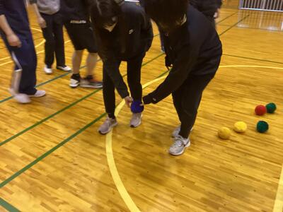↑【模擬授業】福祉・・・視覚障害者の歩行誘導について学びました。